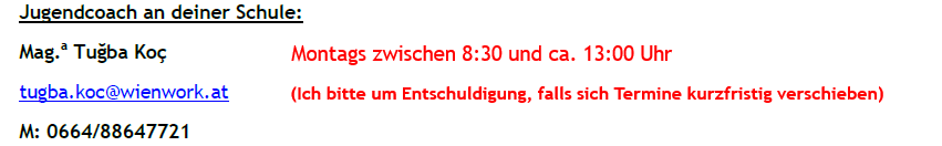 Für ein persönliches Beratungsgespräch an der Schule könnt ihr mich gerne kontaktieren.