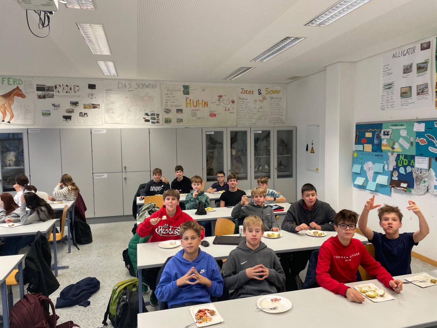 Seit März 2025 hat die 2E/3E mit großer Motivation an ihrem „Feld“ im Schulgarten gearbeitet. Zuerst wurde ein altes Vlies, unter größter Kraftanstrengung, entfernt. Danach hat die Klasse umgegraben und Kartoffeln angepflanzt. Diese sind dann über den Sommer gut gewachsen und konnten schlussendlich im Oktober von den SchülerInnen geerntet werden. Am Freitag 14.11. war es dann so weit und die Klasse hat gemeinsam mit ihrer Biologielehrerin Barbara Nußbaumer die Erdäpfel im Biologiesaal gekocht und mit köstlichen Zutaten verfeinert verspeist. Es war ein langes und sehr lehrreiches Projekt, dass wir alle genossen haben!