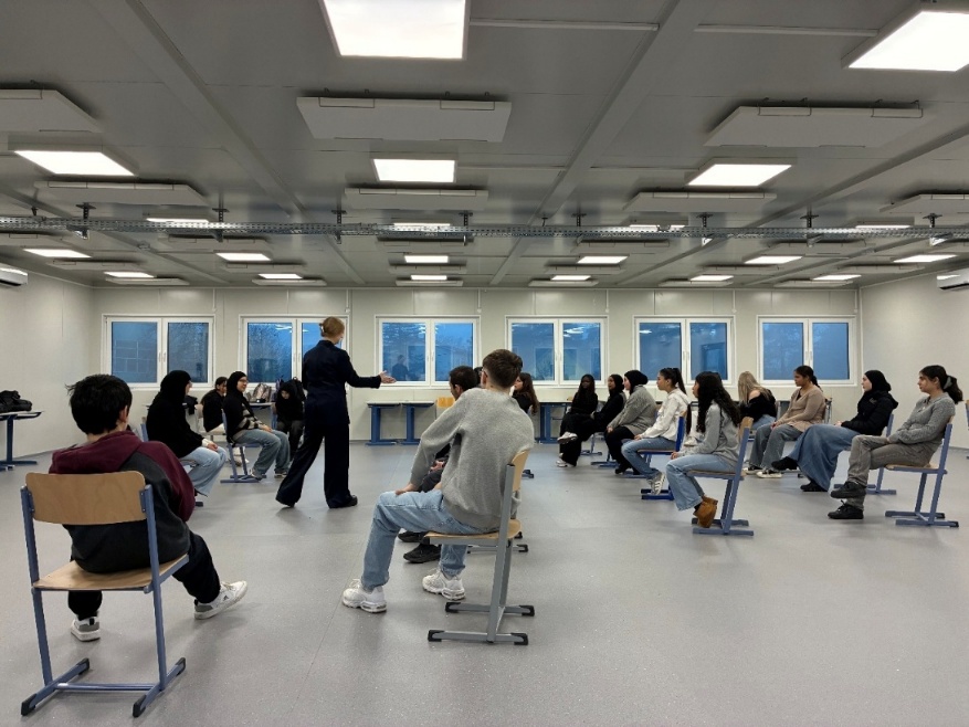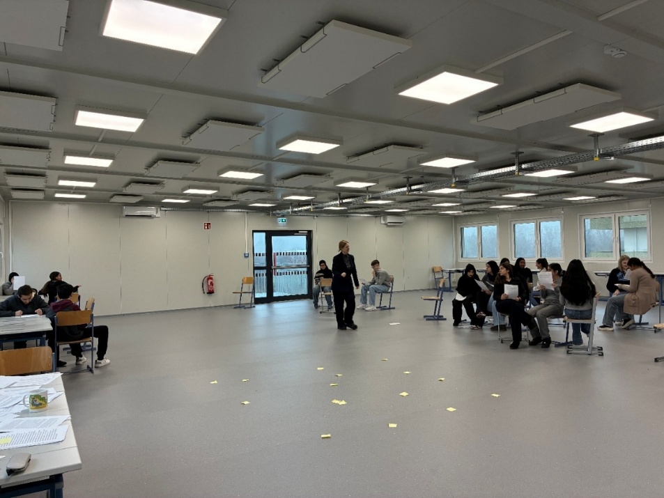 Am 18.12.2025 wurde der Gymnastiksaal für die Schüleri:nnen der 5D zur lebendigen Bühne. Unter der einfühlsamen und inspirierenden Leitung der Theaterpädagogin Mag. Bettina Stokhammer, MA tauchten die Jugendlichen mit großer Begeisterung in die Welt des Stegreiftheaters ein. Der Workshop fand im Rahmen des Programms des Volkstheaters für junges Publikum / Schulklassen statt.