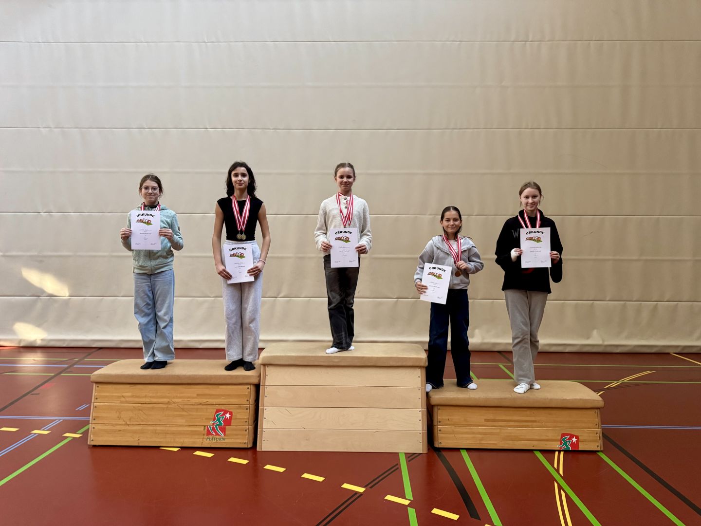 Die Gesamtwertung der Mädchen gewann TUITZ Lara (2A) mit 77,5 Punkten, vor CARBUNE Milena (2A) und WEIRICH Birgit (2F) mit 72,5 Punkten und Platz 3 erreichten ABAZI Aurora (2A) mit 71,5 Punkten sowie GADOMSKI Katelyn (2D) mit ebenfalls 71,5 Punkten.