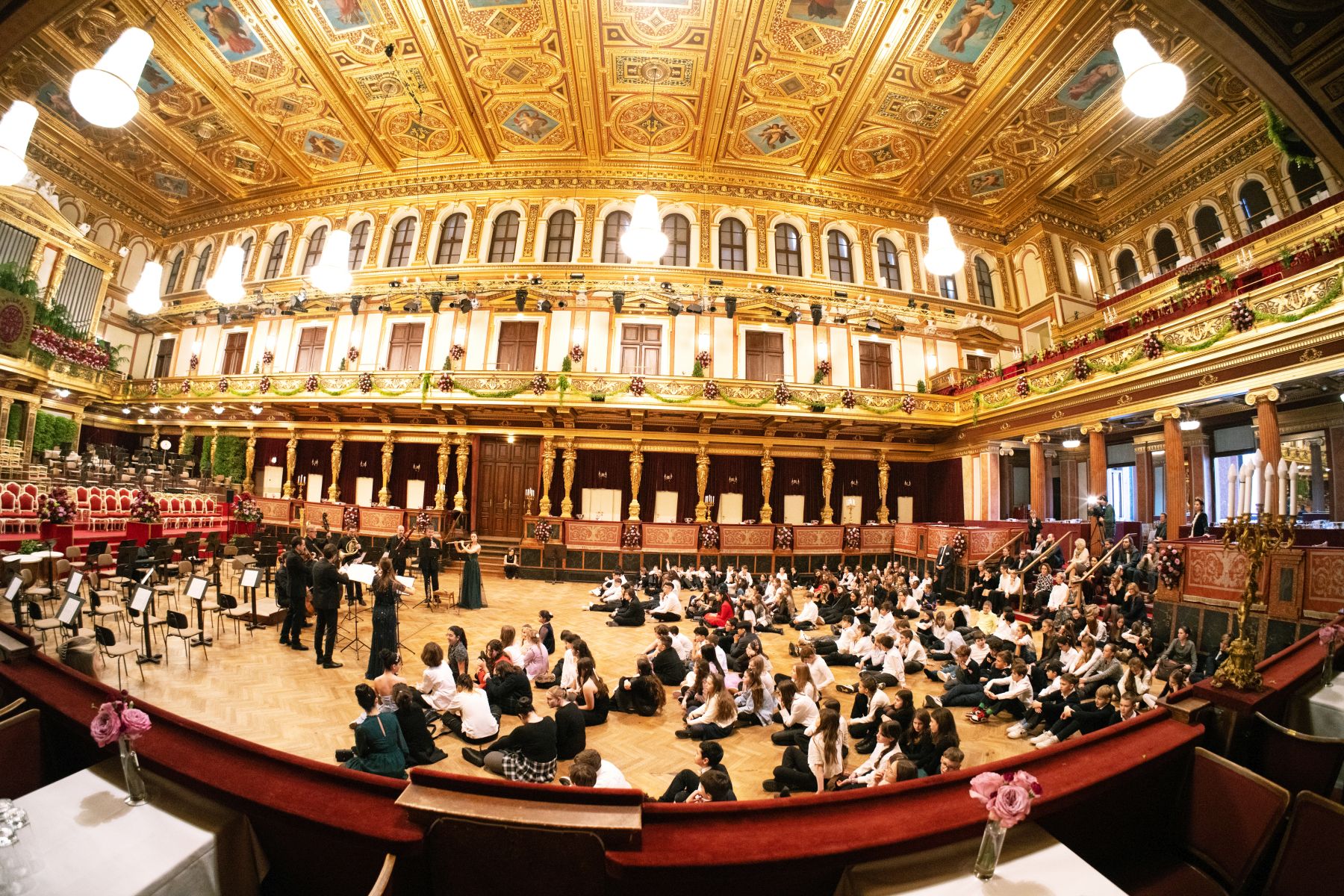 Am Nachmittag des traditionellen Philharmonikerballs öffneten die Wiener Philharmoniker in diesem Jahr exklusiv die Türen des festlich geschmückten Ballsaals für ein junges Publikum. Ein einzigartiges Event, das es so nur einmal im Jahr gibt. Für eine Stunde konnten die Schüler*innen in eine Welt voller Musik und Eleganz eintauchen und sich von der klassischen Walzermusik verzaubern lassen.
