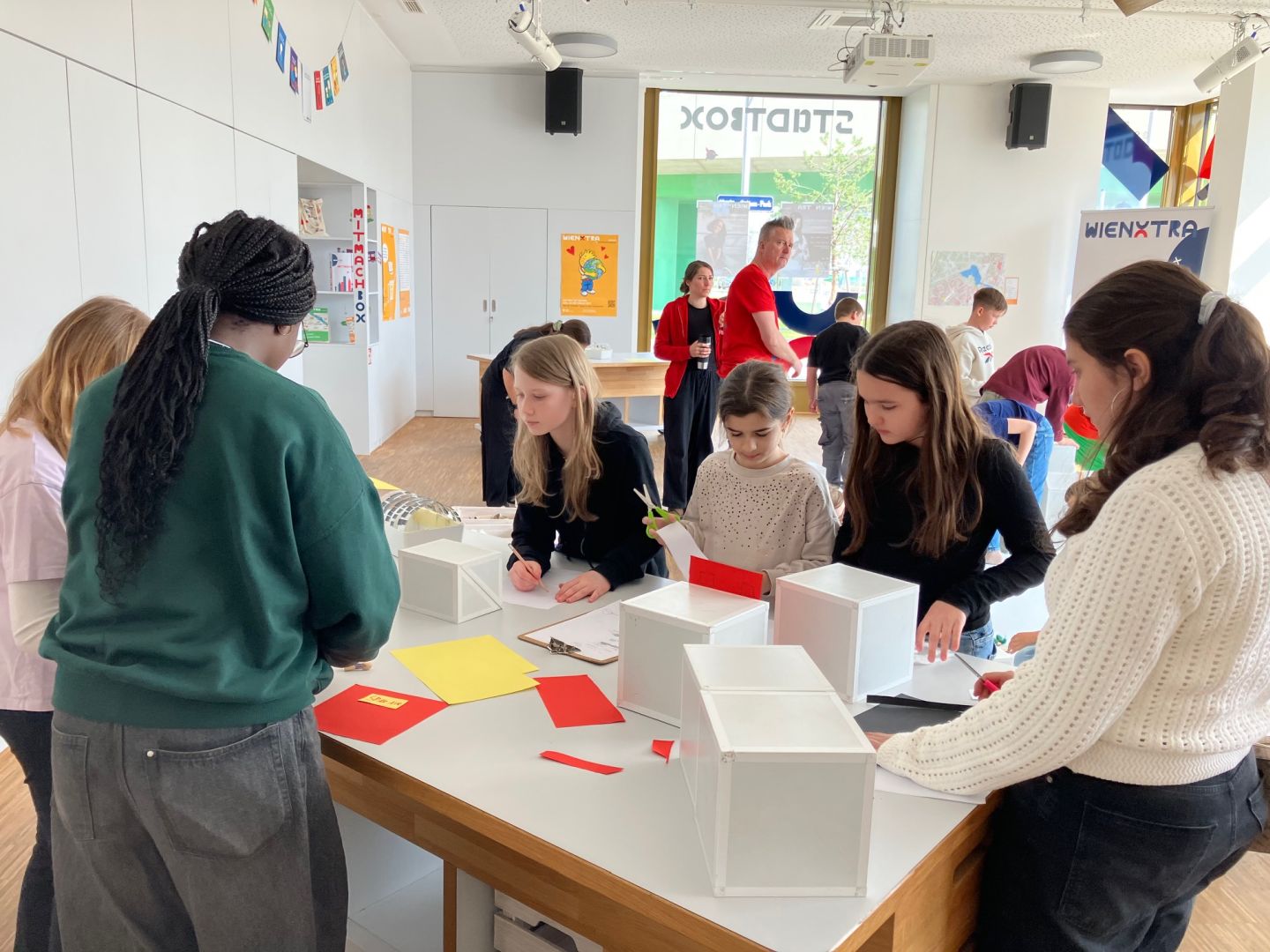 Am 26.03.2025 machte sich die 1D in die Seestadt Aspern auf, um einen 2,5-stündigen Workshop zum Thema „Stadt(t)räume“ zu besuchen. Dieser fand in der Stadtbox Wien, einer Einrichtung von WIENXTRA statt und ermöglichte Schülerinnen und Schüler Stadtentwicklung hautnah mitzuerleben und gleichzeitig mitzugestalten. Einerseits bei der Fahrt mit der U2, bei der man durch das Stadterweiterungsgebiet Hausfeld, welches gerade erschlossen und bebaut wird, vorbeifährt und letztlich in der Seestadt Aspern ankommt, das größte Stadterweiterungsgebiet Wiens überhaupt, wo schon vieles steht, aber noch einiges gebaut wird. Andererseits in einem sehr kurzweiligen Workshop zum Thema „Erschaffe deine Fantasiestadt“, wo Kreativität, Kooperation und Teamfähigkeit besonders gefragt waren.