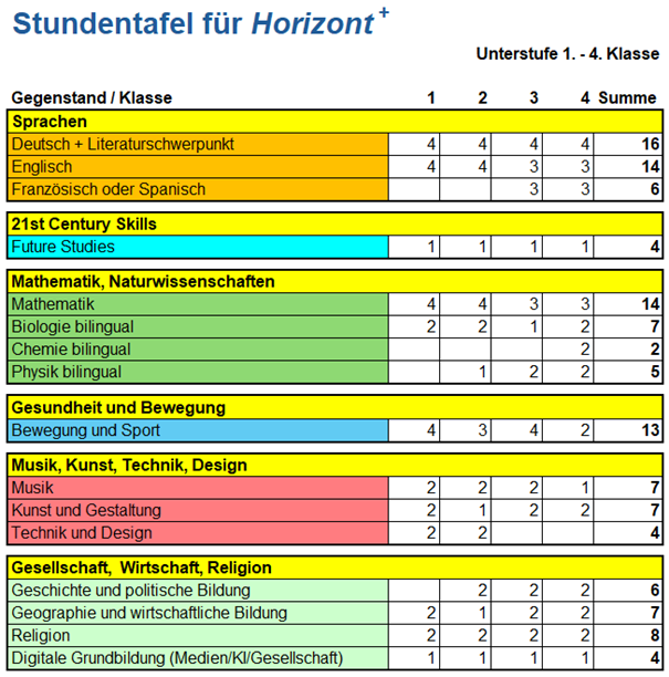 Horizont+ bietet unseren Schüler:innen eine Reihe von Neuerungen. Mit unserer schulautonomen Schwerpunktsetzung machen wir aus dem neusprachlichen Gymnasium einen attraktiven, fokussierten und zukunftsorientierten Zweig an unserer Schule.